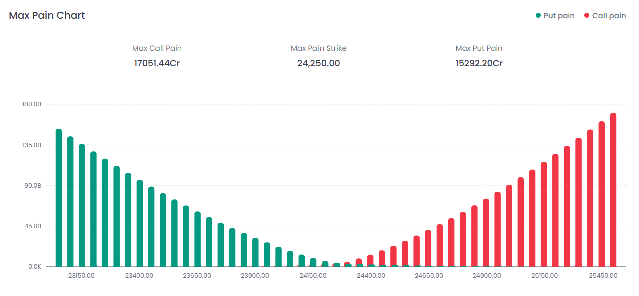 The Max Pain Strike is currently pegged at 24,250.00.
