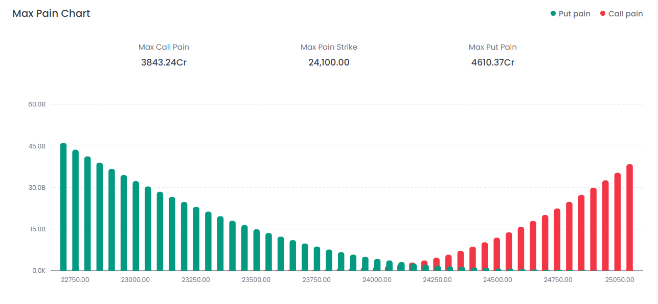The Max Pain Strike is currently pegged at 24,100.00. With the market closing significantly below this level at 23,866.85, the index is currently trading in a zone that puts maximum pressure on Put writers.