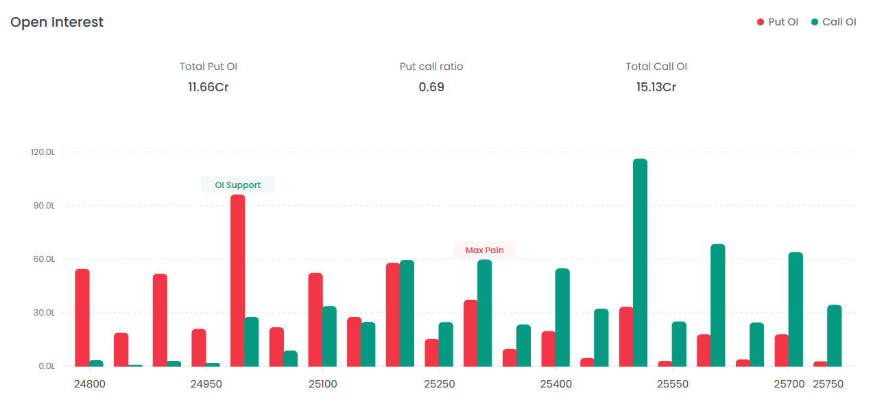 25,000 is a key psychological and OI-based support level. Heavy Put writing and strong buying interest indicate that this zone is acting as a short-term floor.