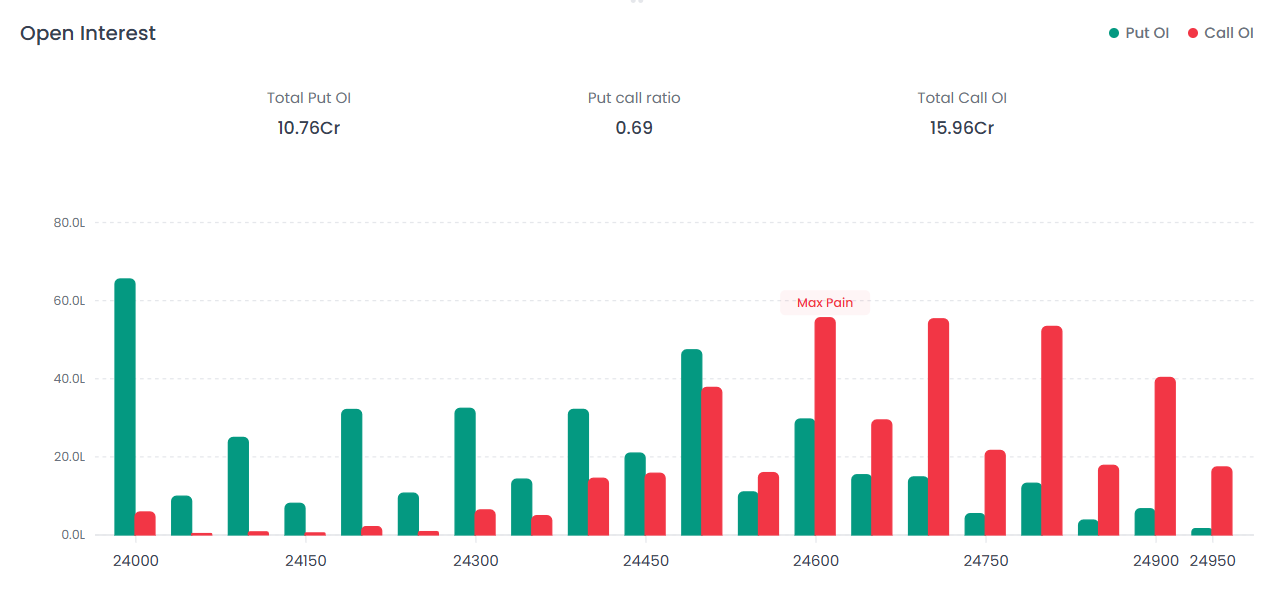 Massive Call OI buildup at 24,600, acting as a stiff hurdle.