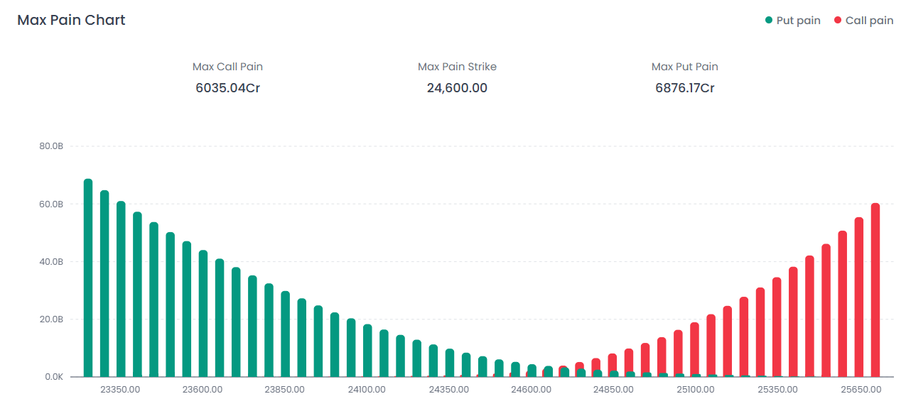 With the Nifty trading at 24,450.45, the index is below the Max Pain level.